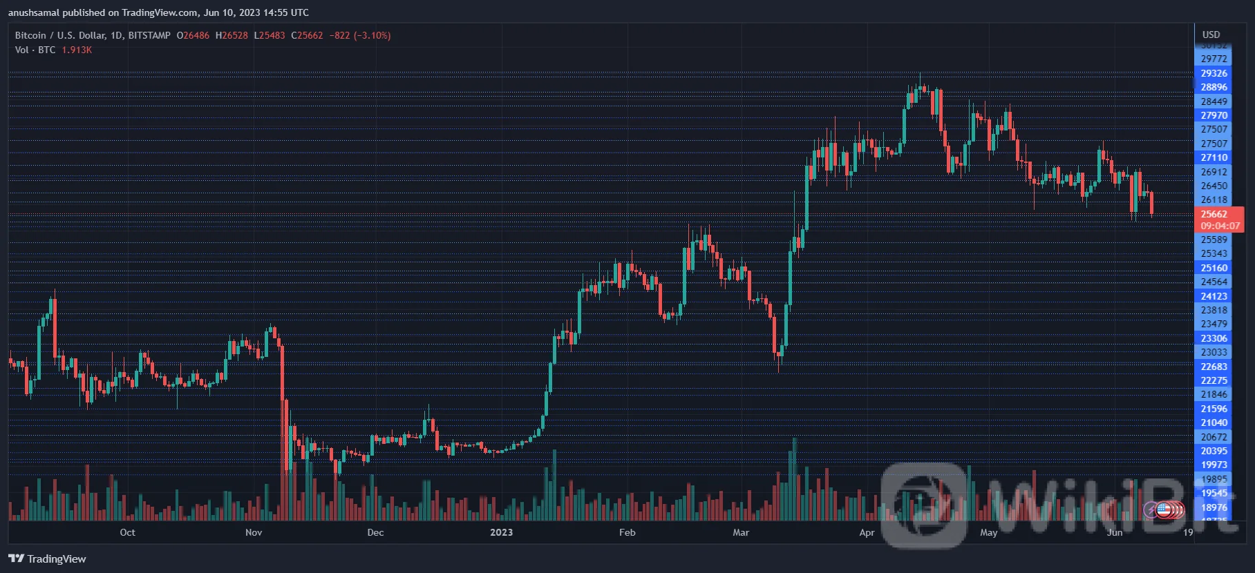 比特币在一日图上的价格为 25,600 美元 | 天天要闻资料来源:TradingView 上的 BTCUSD