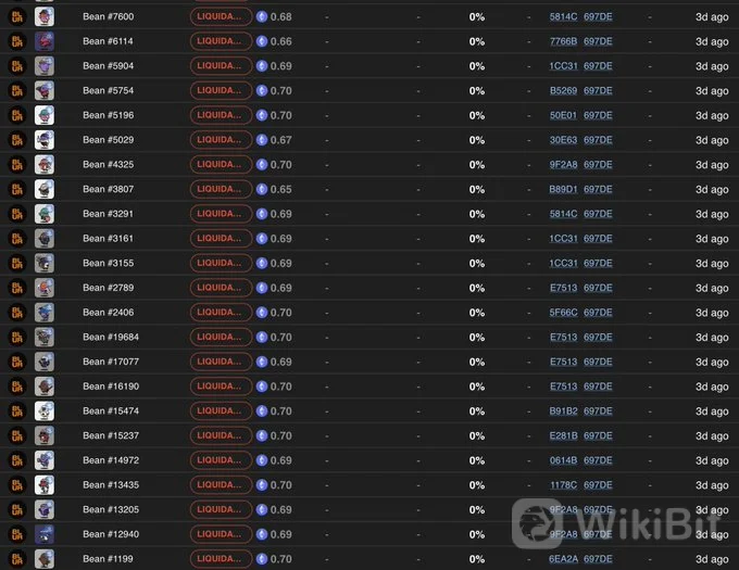 此次清算中,Azuki生态系统受到的打击最为严重。 随着 10-15 笔 NFT 贷款被清算,超过 630 个 Beanz 约占 Beanz NFT 总数的 3% 被清算。 好消息是,清算速度在过去几个小时内显着放缓,并且已经没有多少贷款处于困境中。