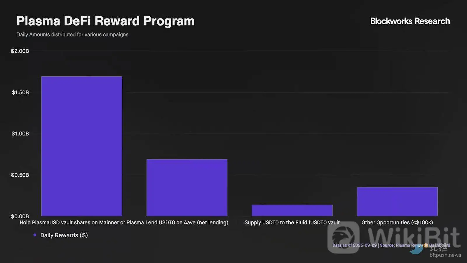 据估算,Plasma 当前的激励发放规模约为 每日 280 万美元,资金主要来自初期代币分发与合作协议激励池。