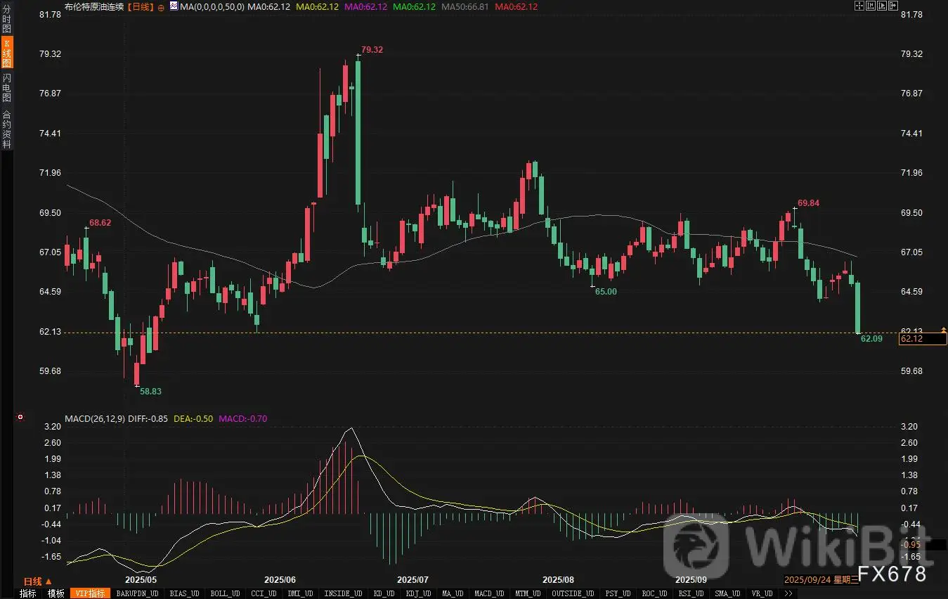 从技术图表上看,(如附图所示),油价的急剧下滑打破了此前数月的震荡区间,MACD等技术指标快速转弱,显示出市场情绪已从平衡转向明显的看空主导。